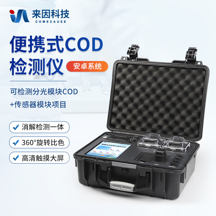 简要描述: 便携式COD检测仪IN-BC Pro集成两种快速检测原理方法(分光法和电极法),采用高强度PVC工程塑料手提箱设计,消解检测一体式设计,其中消解模块具备双温区功能,检测部分同时具备360°旋转比色管检测和比色皿检测,安卓智能操作系统,8英寸高清液晶触摸屏,光纤检测技术,进口光源,内置大容量锂电池,便携多参数水质检测仪具有性能稳定、测量准确、测定范围广、功能强大、操作简单等特点。